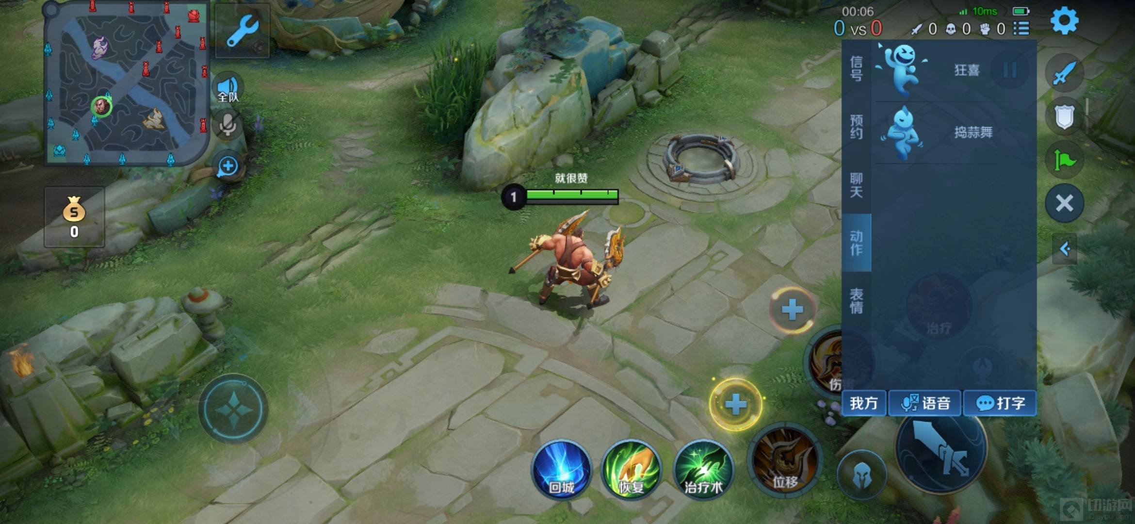 5、进入游戏后,点击平常的聊天按钮就可以选择下方的动作按钮,想使用什么动作点击一下英雄就开始进行动作跳舞了。