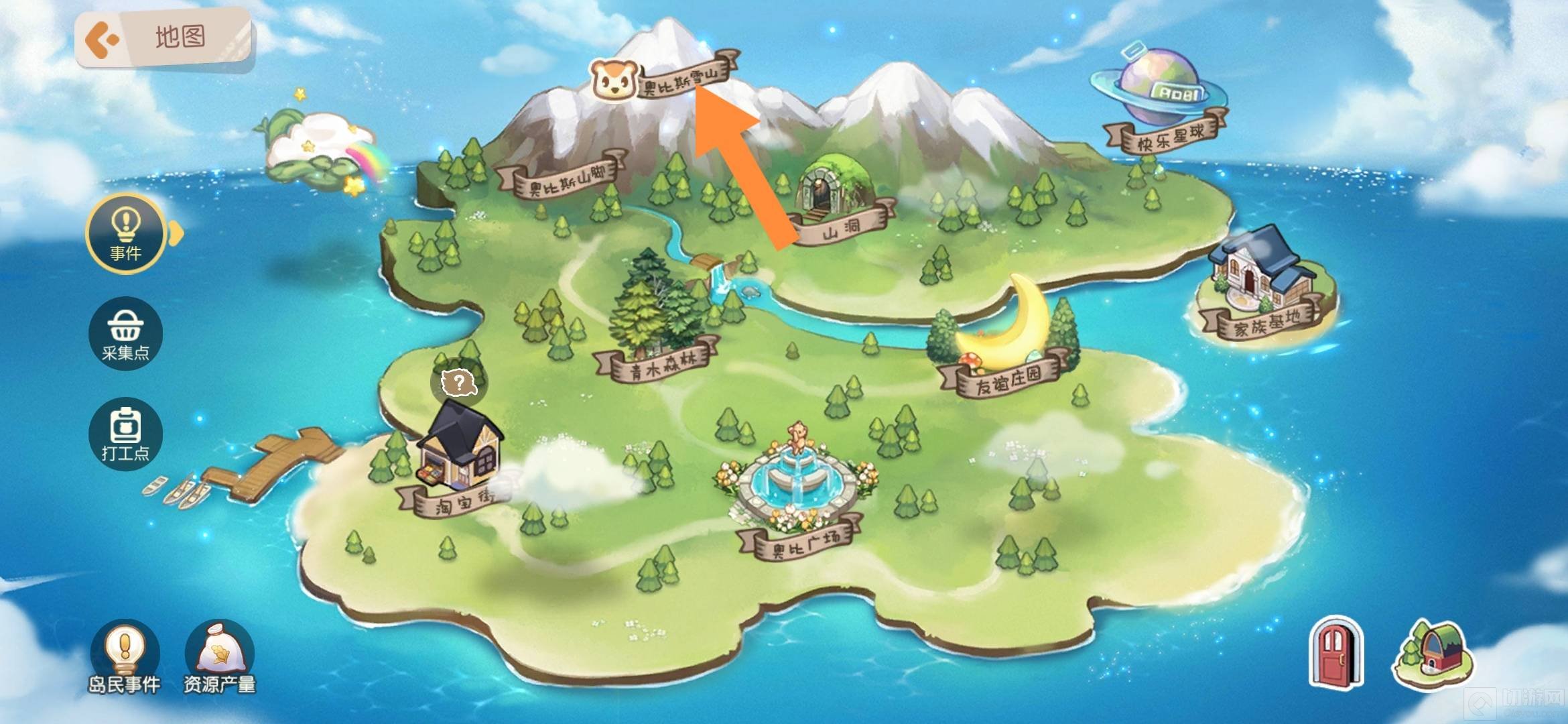 2.点击前往奥比斯雪山。