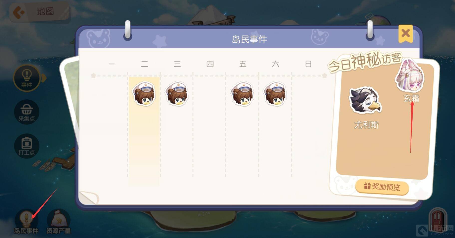 1.可以在岛民事件中查找今日神秘访客,在玄霜出现时即可接取她的任务。