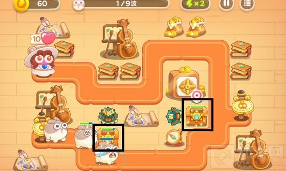 2、赚取更多金币的时候,在右边的位置放置多重箭,这样可以清理怪物又能够清理障碍,先打宝箱。
