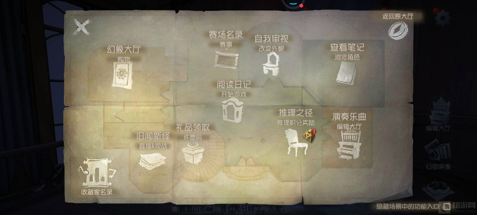 1.首先要进入到第五人格手游的大厅中,点击右下角的心境地图。