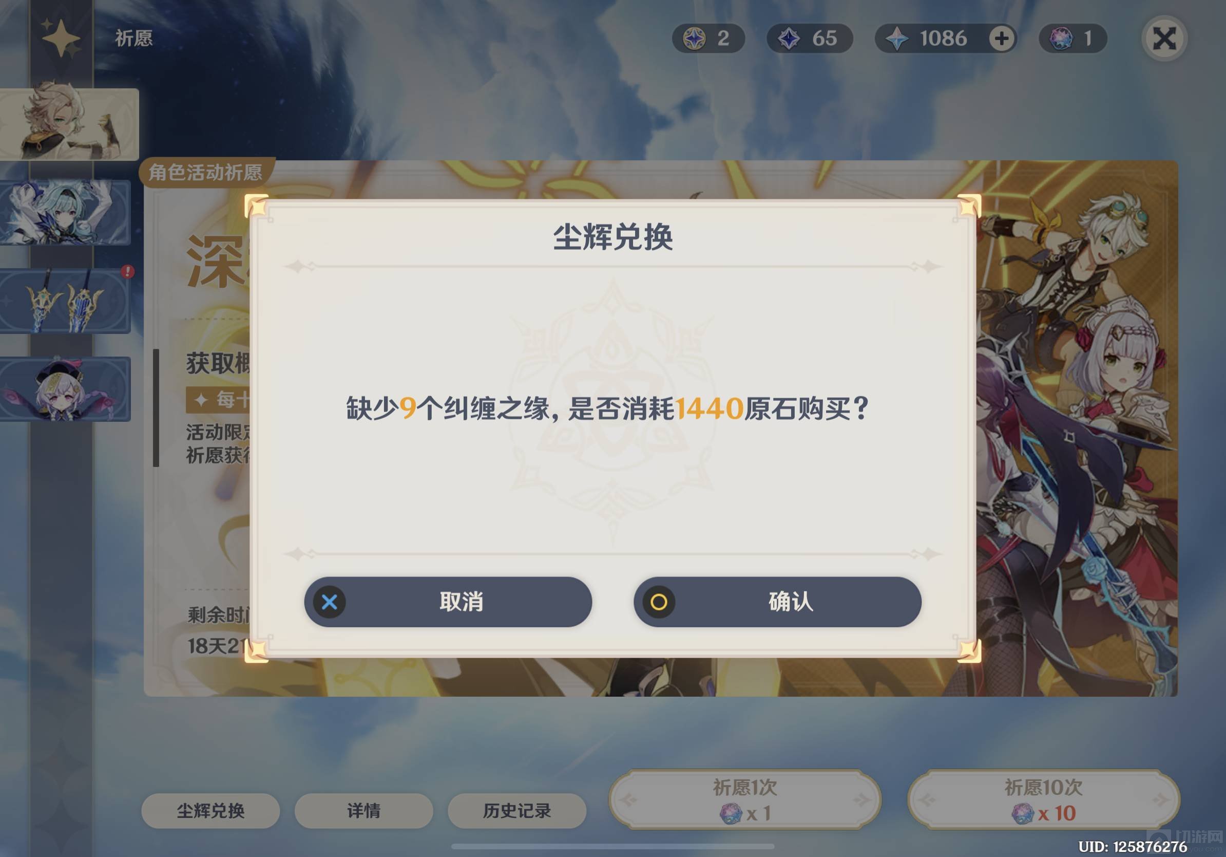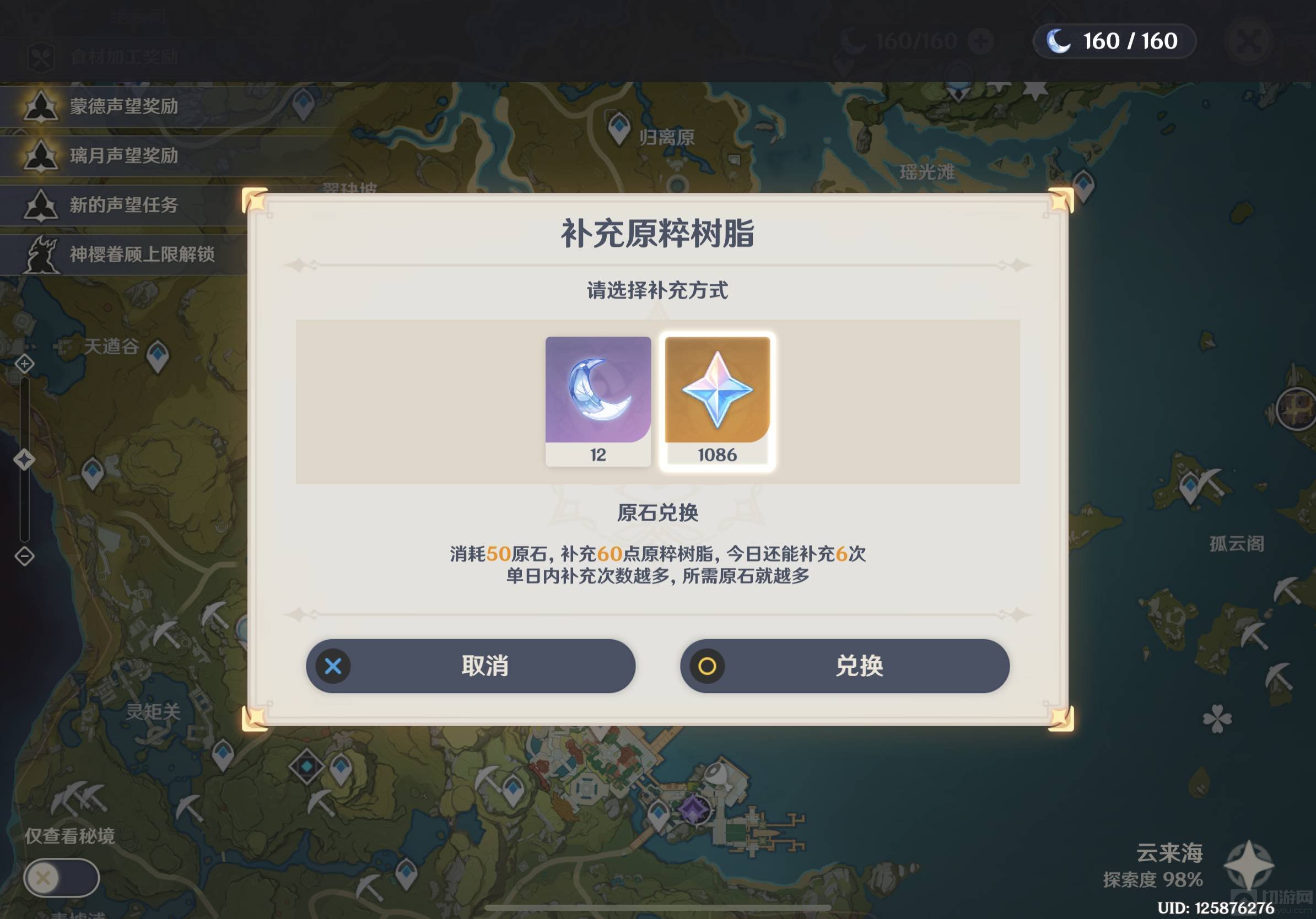2、恢复体力。在原粹树脂用尽之后可以用原石兑换原粹树脂来补充体力。