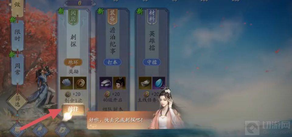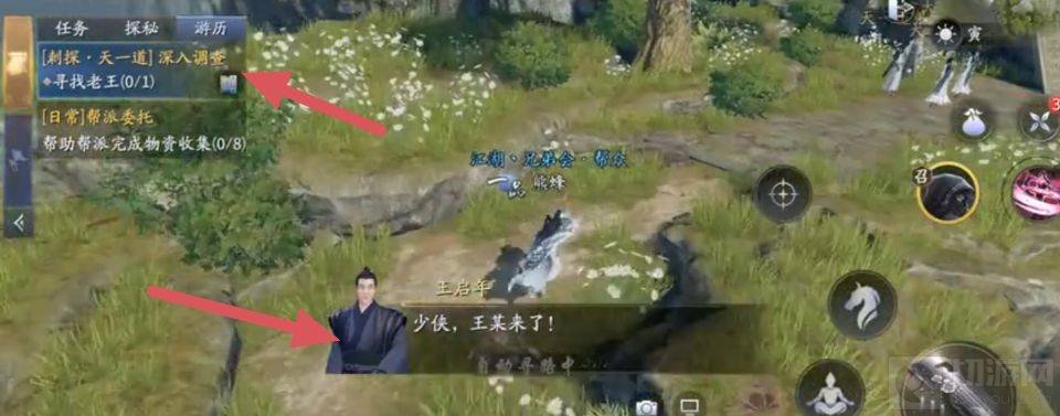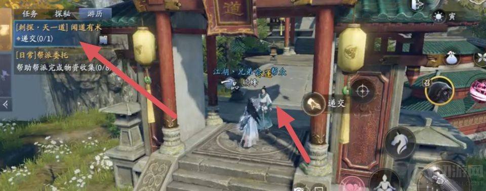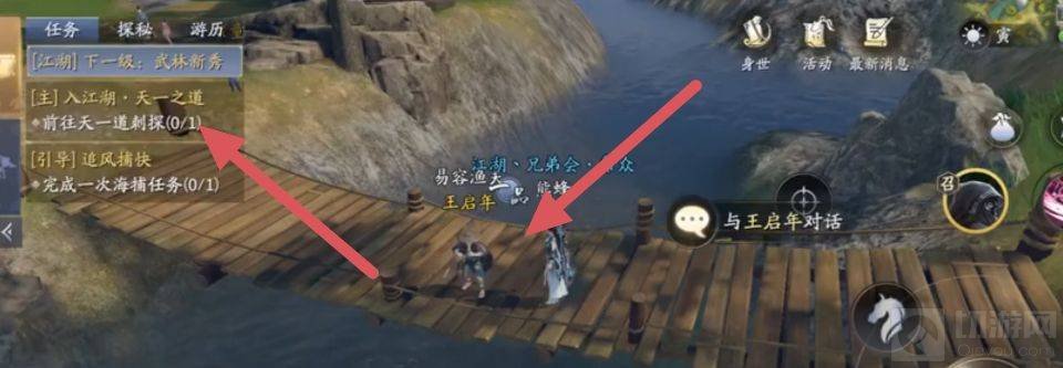 海棠朵朵是在主线任务天一之道任务出现的,首先到这个桥这里找到王启年对话。