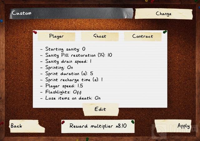 新更新将为玩家提供大量定制化选项,让玩家能对游戏各方面进行调整,比如调整鬼魂和玩家的移动速度、初始理智值、理智下降速度、跑步耐力。是否能用手电筒、死亡是否掉落等,在未来还将增加更多的选项。玩家可以把难度调简单,也可以挑战更高难度,高难度下奖励更丰厚。设定好的难度选项可保存下来,以方便使用。