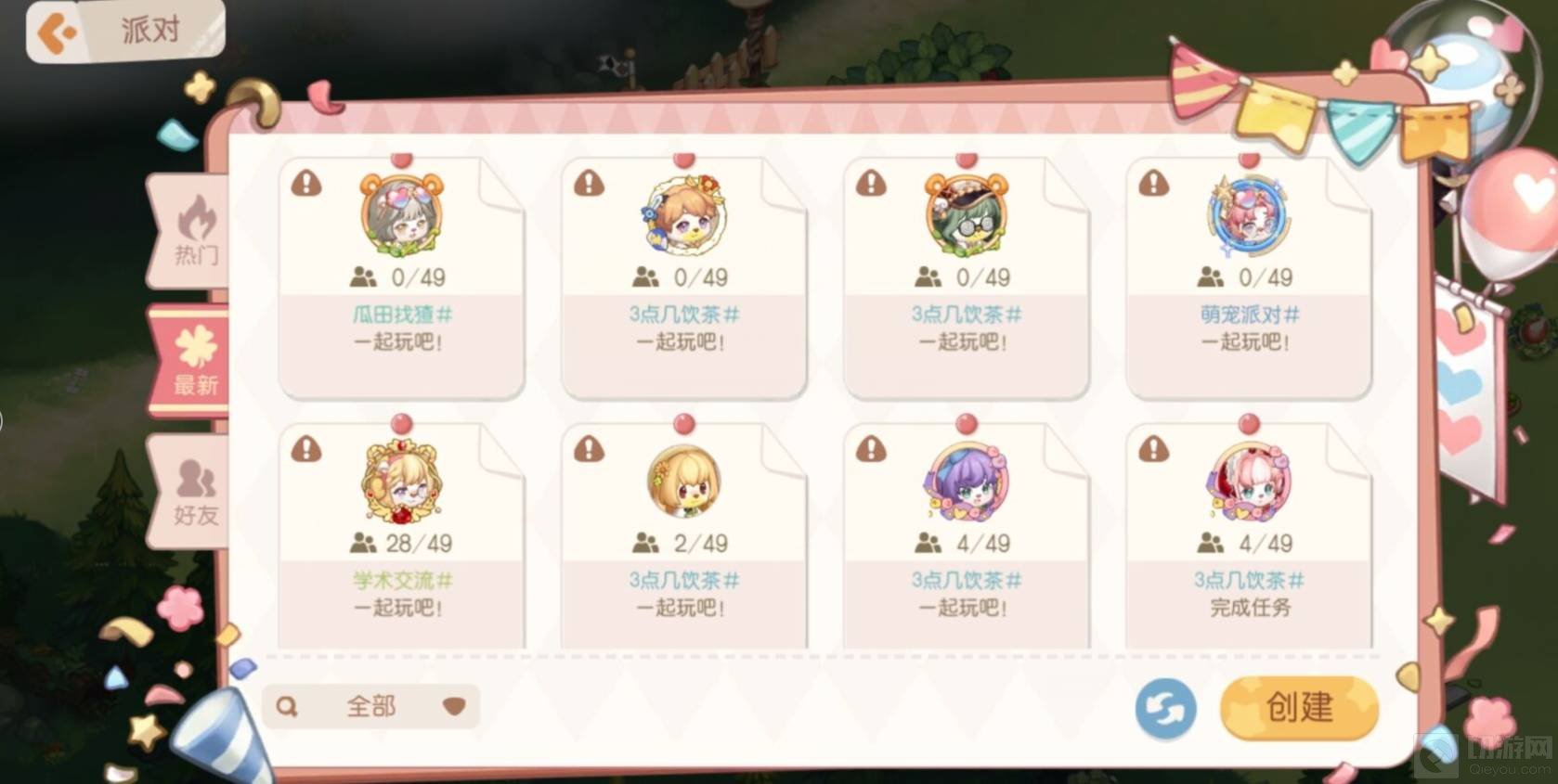 3、接着就可以很多正在举行的派对了,点击一个派对进入。