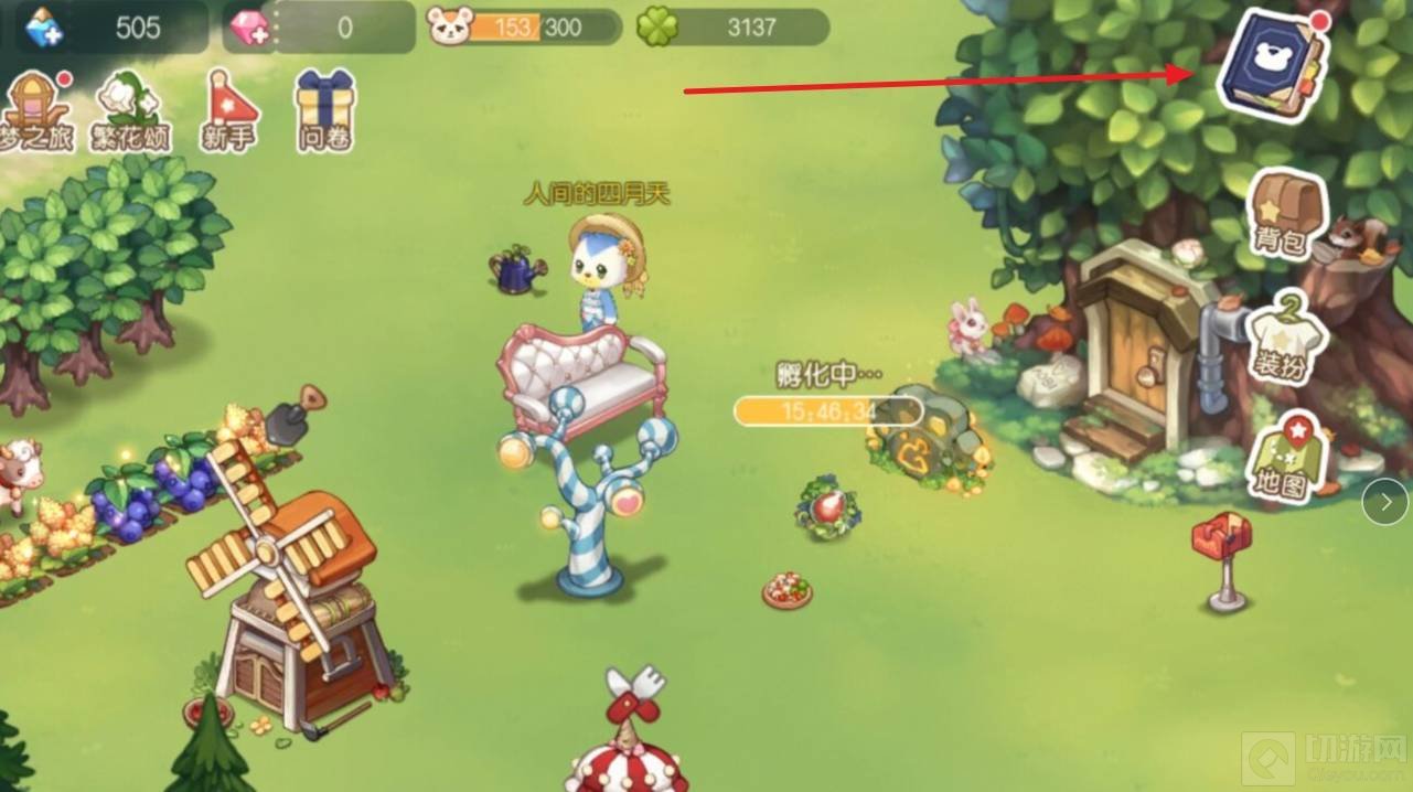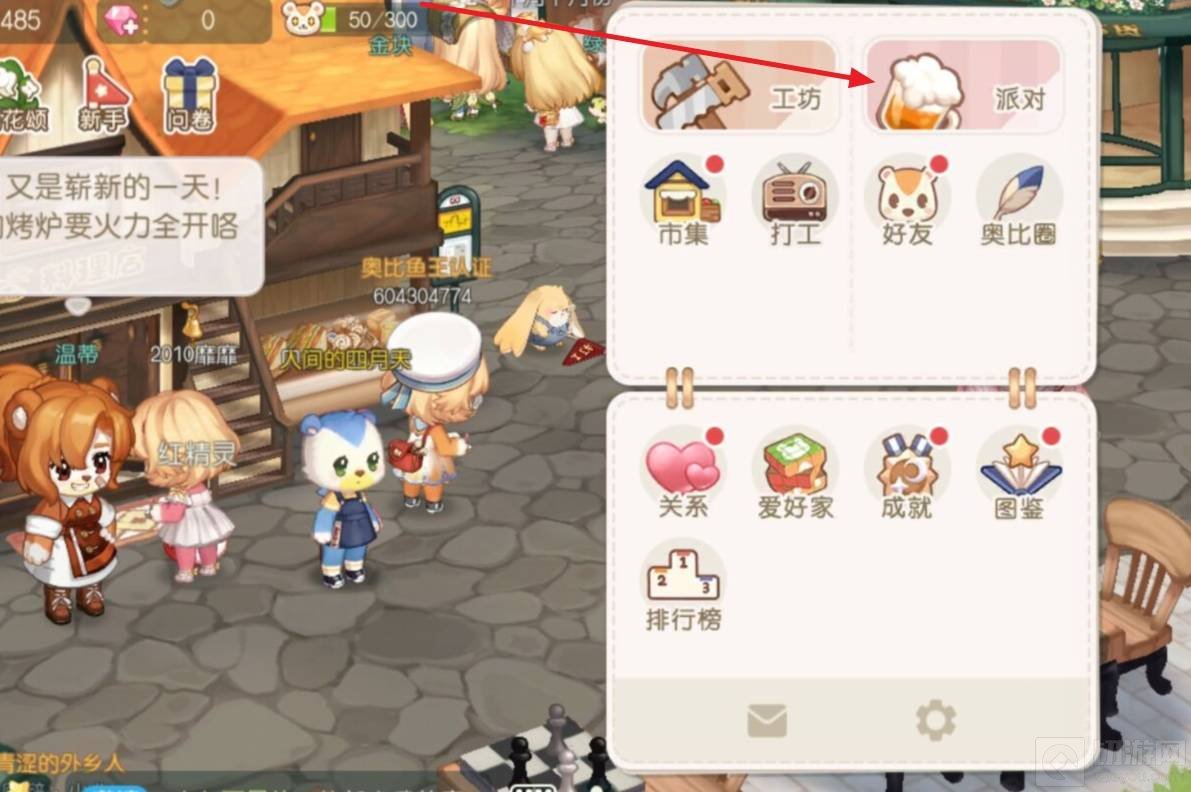 1、奥比岛派对的举办地点是在玩家的家里面。先点击右上角的蓝色书。