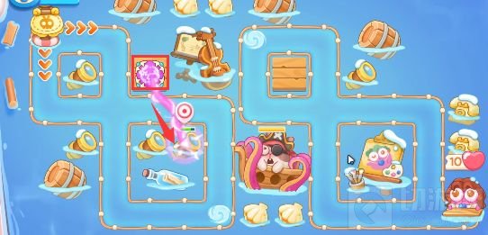 4、打掉海盗兔之后可以使用大炮,只不过这一关没用到它,如图所示。
