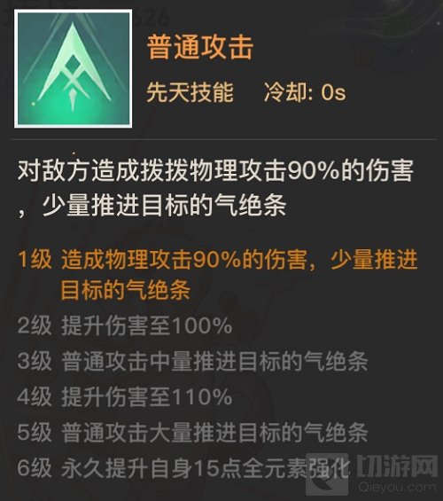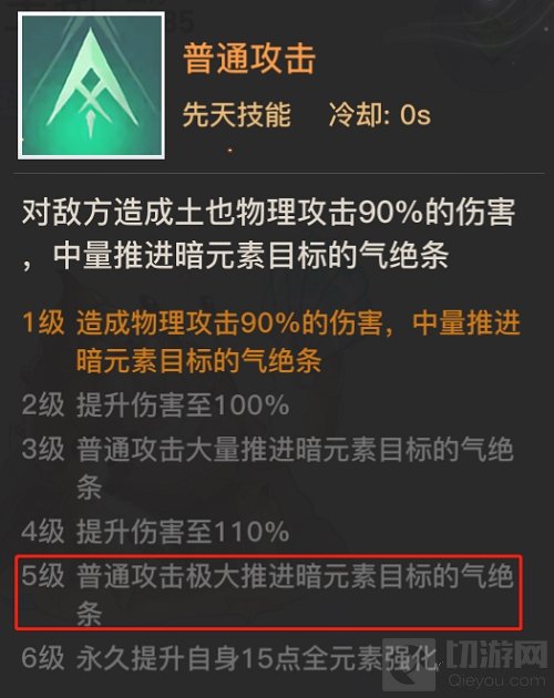 2、土也的普攻技能可以推进暗属性目标的气绝条,土也的普攻可以选择尽量升级到五级,可以极大的推进暗元素目标的气绝条,而副本的怪也都是暗元素,所以选择土也也是挺好的。