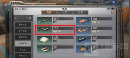 7.在资源列表中大家仔细找找就可以看到爪子了,但并不是每次都有,因为如果别人没交易的话是没有的,有的话就可以交易获得,这次有38个,点击即可购买。