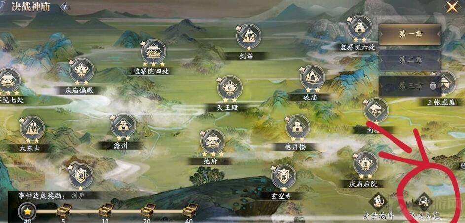 先尝试看看第一章所有任务是否全做了,星星是否全亮,拼图是否全拼,决战神庙图标是否点了,如果全完成了也打不开,就再点开右下角的线索总览,还有一步拼线索,看看线索拼了没有,将线索全拼完就可以开启庆余年决战神庙第二章了。