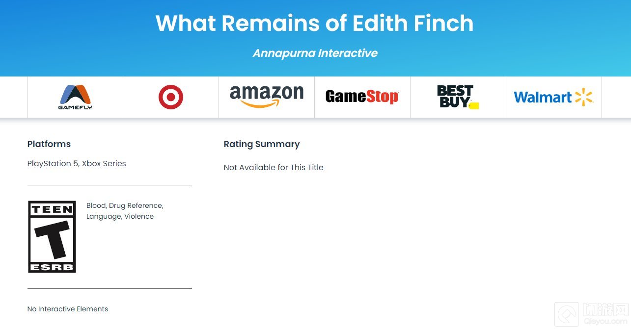 《艾迪芬奇的记忆》PS5和Xbox Series版本现已通过ESRB分级,该作的发行商Annapurna Interactive将于7月29日凌晨3点举办线上发布会,届时有望正式公布。《艾迪芬奇的记忆》PS5和Xbox Series版此前还通过了巴西和中国台湾地区的分级。