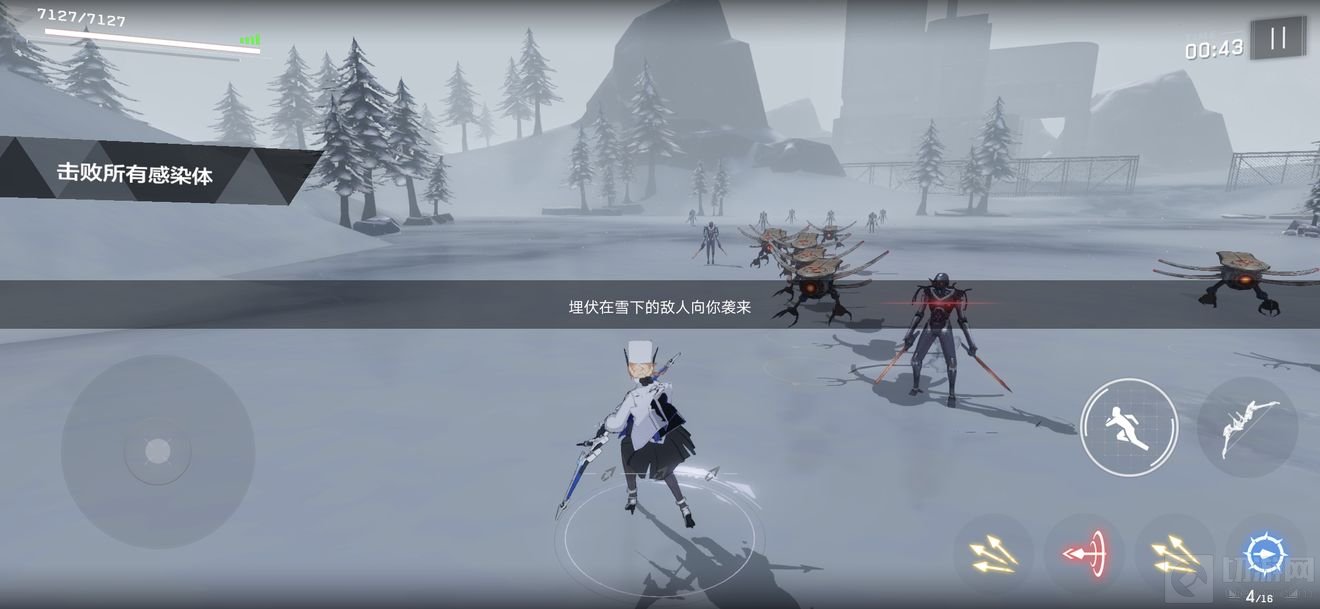进去之后向右边看,就可以看到地上那个很明显的大冰团,走过去碰一下就会出现隐藏敌人,出现的隐藏敌人,你不用管,直接走向下一个兵团,然后就这样一直走到最后一个兵团,再清理所有敌人。