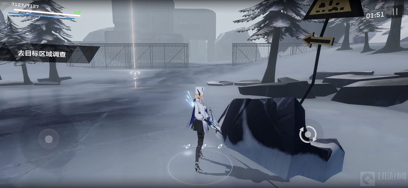 清理完所有敌人,根据提示走到指标右边的巨型石块,点击按钮,即可获得【雪下十字架】然后走进光圈,清理完所有敌人即可开启场剧情。