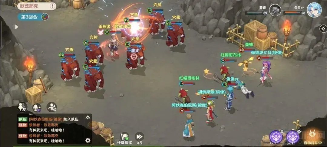 在战斗页面里中,会根据场上怪物状态显示出BOSS机制、克制关系、行动次序三个关键信息,玩家则需要根据这些信息来实施恰当的战术指挥。例如遇到召唤系的BOSS时,需要优先集火目标,而在面对拥有强力治疗和辅助的对手时则要优先秒掉提供治疗的单位。这些相对简单的战斗指令还可以通过快捷指挥机制实现实时指挥,即便没有开黑也能够通过指令来判断队伍的战术抉择。