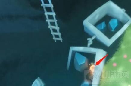 2、其次领取任务后向船头位置的礁石中间飞,一直到水坑的位置进行下潜。