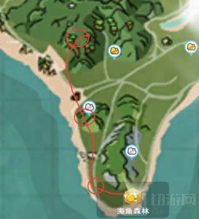 4、来到海角森林后,按照如图所示的路线进行移动。