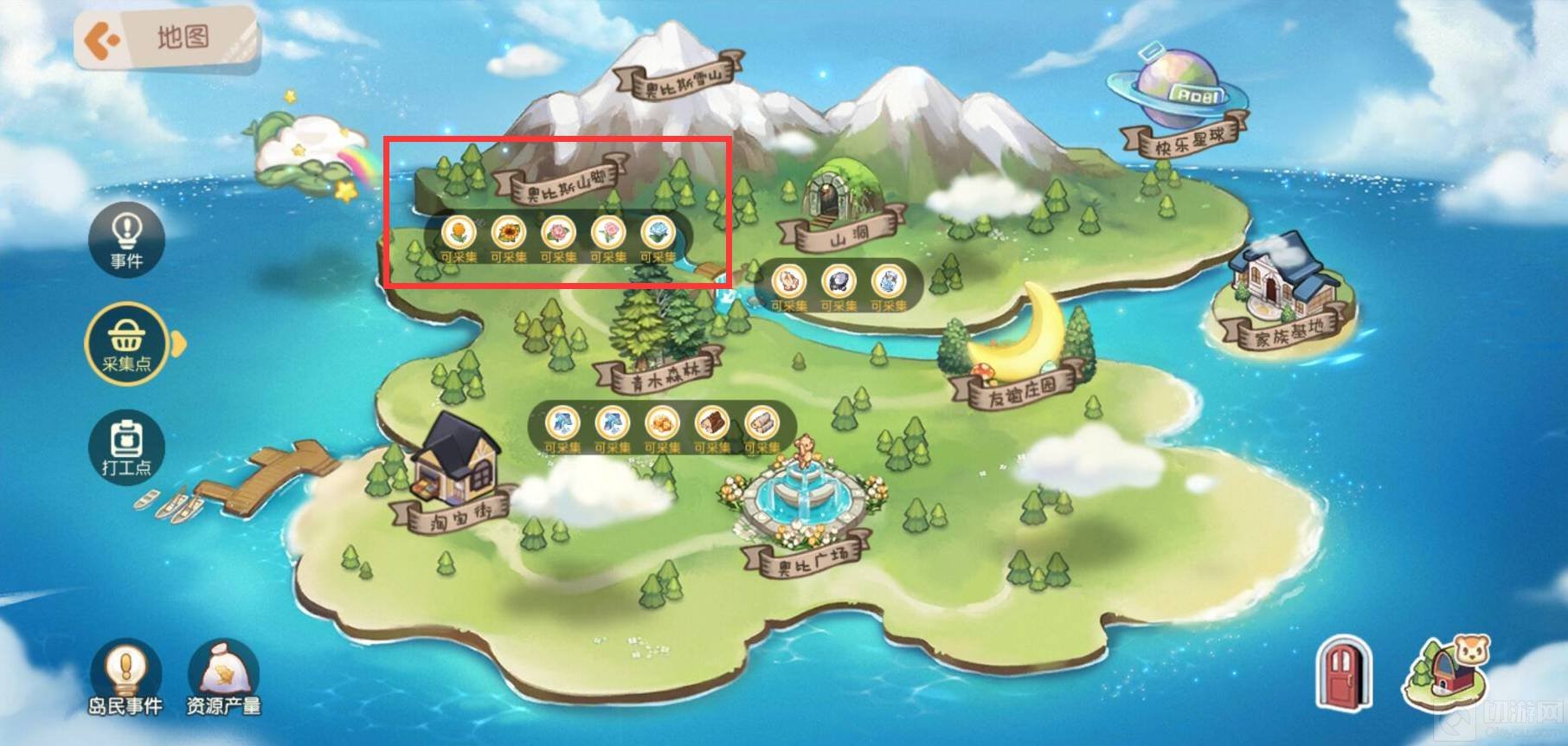 第一种方式:来到奥比斯山脚进行采集。