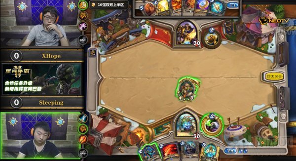 第一盘是矛与盾的较量,XHope的奶骑面对Sleeping的打脸萨满,萨满凭借毁灭锤的输出,在7费击杀了没有摸到回血的骑士,1:0,Sleeping先下一城;第二盘依旧是矛盾之争,Sleeping使用龙战士挑战XHope的奶骑,龙战士的抢脸速度不如萨满,面对奶骑的多重解场,战士手牌很快消耗殆尽最终被骑士的场面堆死,1:1双方战平;第三盘,Xhope用打脸萨满迎战Sleeping的龙战士,两个打脸职业比谁先站场,战士在4费回合站了4个随从,萨满场面完全处于劣势,战士很快在7费斩杀了萨满,2:1,Sleeping再次取得领先;第四盘Xhope继续使用萨满,而Sleeping这边是火妖法,萨满这边1费后手两个坑道穴居人十分强势,之后萨满牢牢占据场面,7费萨满就将法师打至3血,Sleeping选择了认输,2:2,双方再次战平;决胜盘XHope的动物园术士面对Sleeping的火妖法,尽管法师在4费时派上的火妖法术士无法解掉,但术士在自己的4费回合拍下了海巨人,这让法师毫无办法,6费回合术士便利用场攻和力量代价斩杀了20血的法师,3:2,Xhope最终战胜了Sleeping进入胜者组。