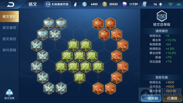 2、铭文:铭文推荐常规的3无双7祸源10鹰眼7狩猎3夺萃铭文,也可以带4个夺萃,看具体对线的强度。