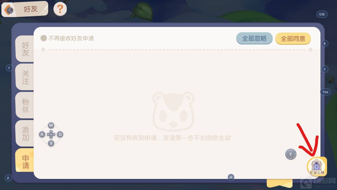 在好友页面中,点击右下方的友谊云梯。