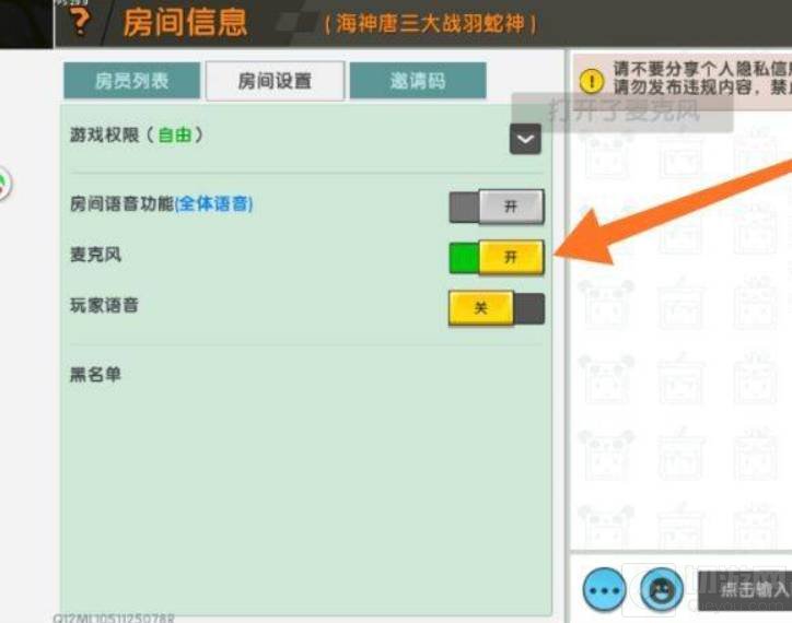 3、在房间设置中,点击开启房间语音功能,然后找到麦克风,点击开即可。