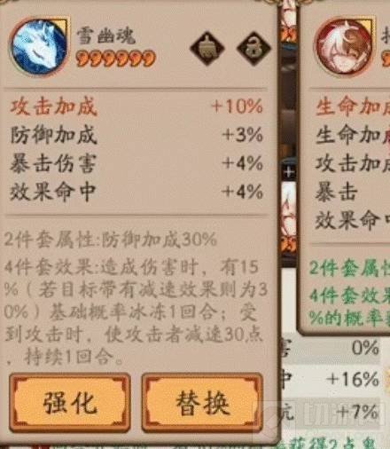 2.雪幽魂四件套:带雪幽魂四件套,造成伤害时,有15%基础概率冰冻1回合,受到攻击时,使攻击者减速30点,持续1回合。