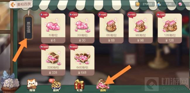 一、在游戏中点击百货图标即可进入奥柏百货;