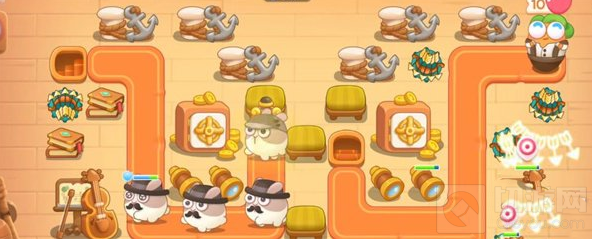 3、地图右边的道具清理完毕,将炮塔火力集中在地图左端,小心冻冻兔,快速打掉冰块,将剩余道具全部清理掉。