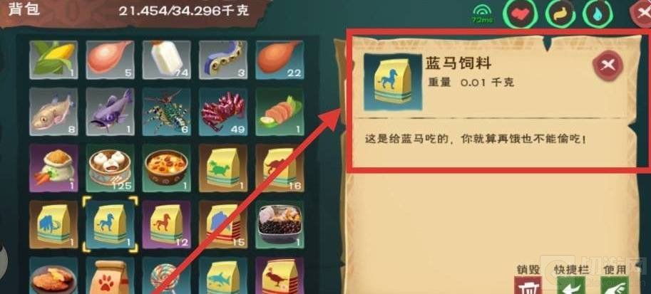 6、眩晕后,喂食蓝马饲料,直到蓝马的头上出现爱心标记。