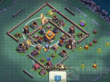 将资源储存器和大本营部落城堡放在中间,在周围放置防御建筑再用围墙围好。周围布置上各种陷阱消耗敌人兵力,加上弓箭塔,熔岩火炮,撼地巨石,双管加农炮防御极大的增强了。之后在外圈放上兵营、采集器、训练营等建筑即可。这种阵型对于实力普通的小伙伴来说,要破阵非常困难。