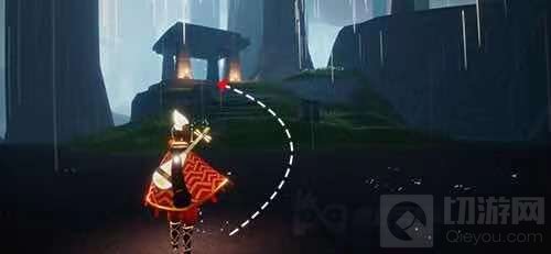3,进入之后会发现有一个小亭子,飞向亭子的前方。