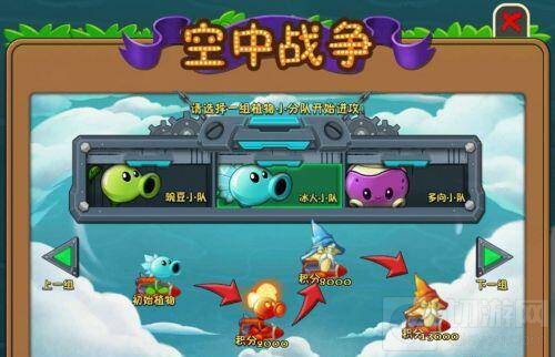 3,这关是使用植物小队抵挡僵尸的进攻植物小队有三种,建议选择中间冰火战队。