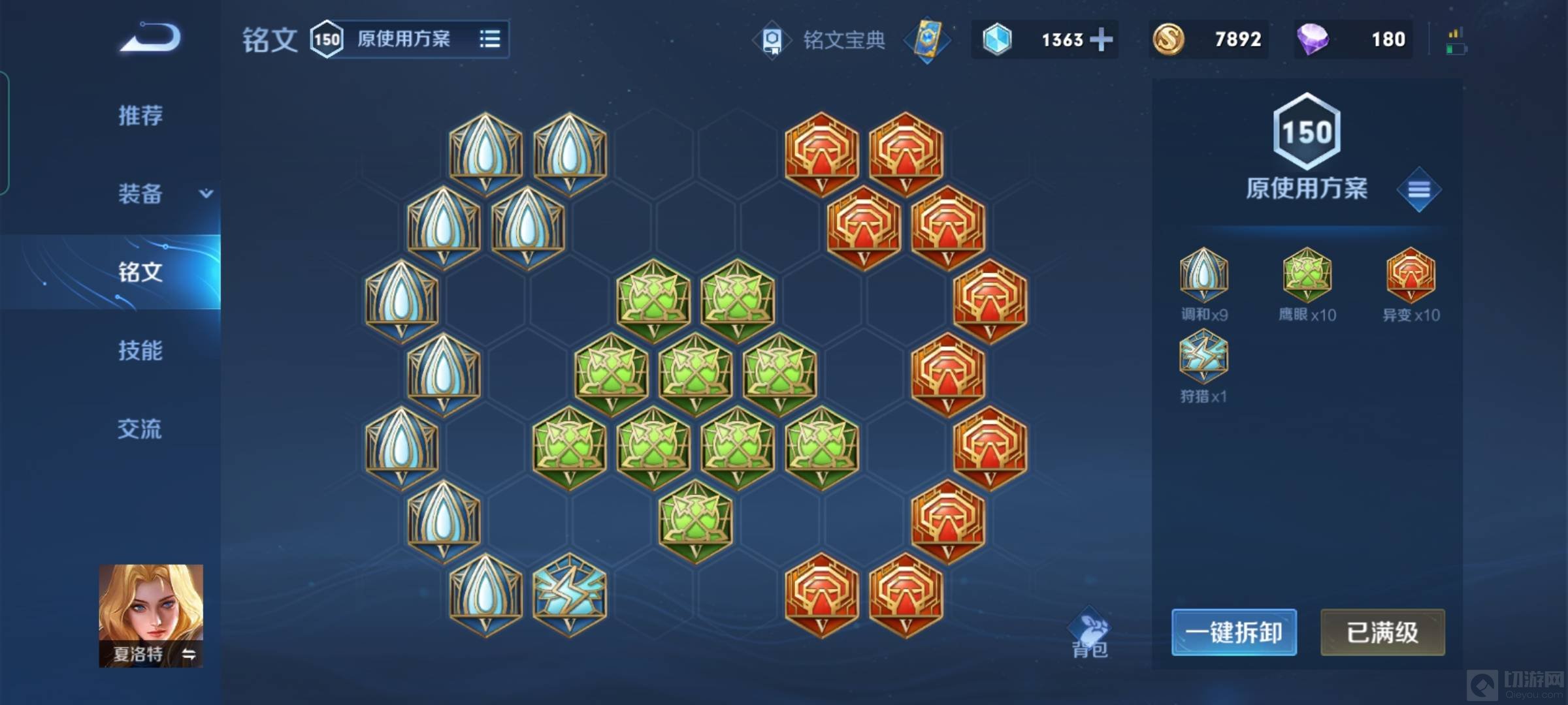 2、铭文搭配:调和9+狩猎1+10鹰眼+异变10。