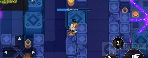 7、第五个房间使用武器技能击杀远处的激光塔后倒计时就会停止,这是碰到紫球后头上的数字也不会变低了,所以后面就没什么难度了。