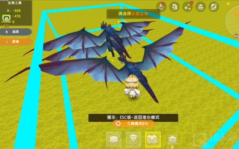 1.选择功能模式,然后在功能模式里选择区域工区选项,然后在玩家面前会出现一个透明的方块,接着在地面上确定好位置,然后使用两个透明方块制作出一个正方体或者长方体的区域,区域尽量要大一些,因为要召唤的双头黑龙体积比较大。