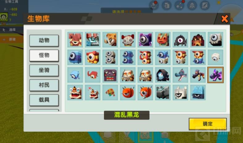 2.区域确定好了以后,点击生物库进入里面有一个生物页面,然后选择混乱黑龙就可以了,最后点击确定,黑龙就出来了。