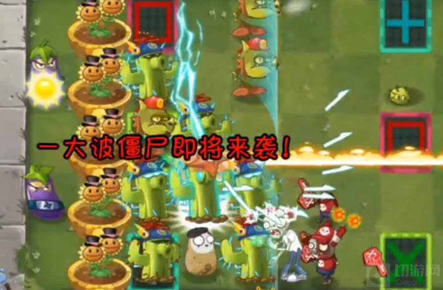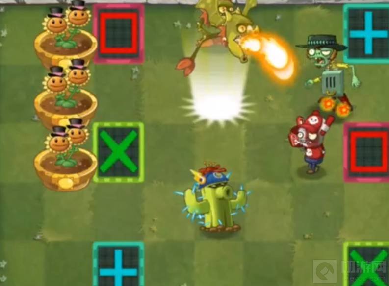 3、植物仙人掌作为攻击主力对付气球僵尸,再加上龙舌兰配合。