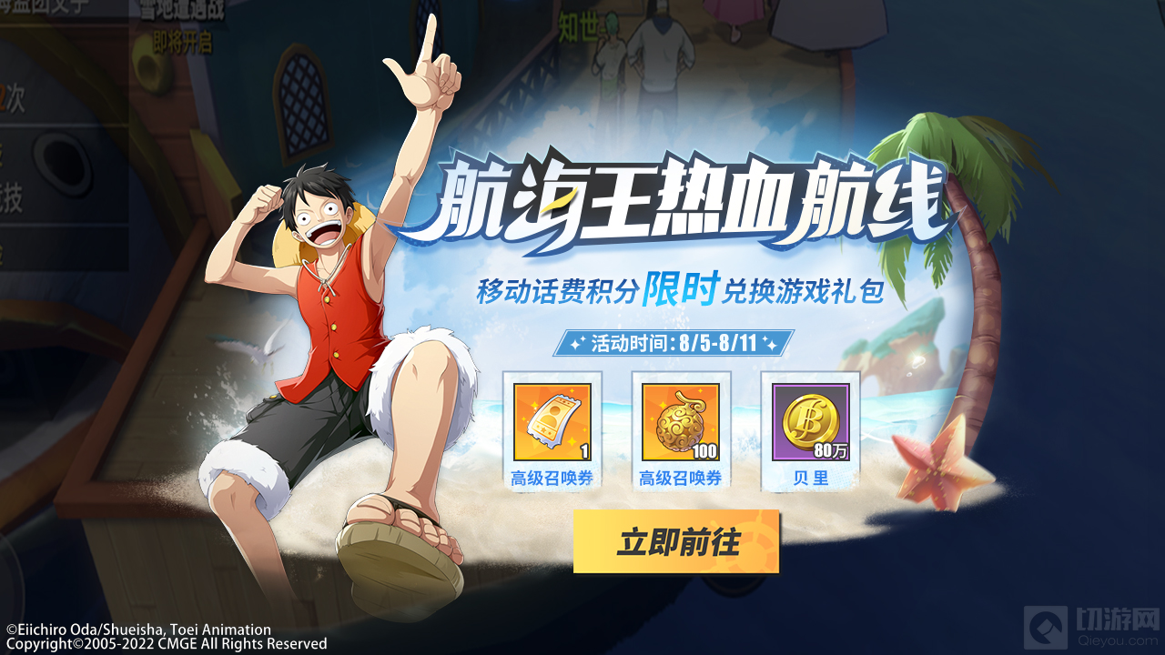 除了新主线、新玩法和新赛事,此次版本上线后,《航海王热血航线》将同步上线移动话费积分兑换相关活动,船长们可以在主页面进入活动页面,在游戏内了解具体活动规则,通过消耗话费积分来获得高级召唤券、黄金之果等好礼。