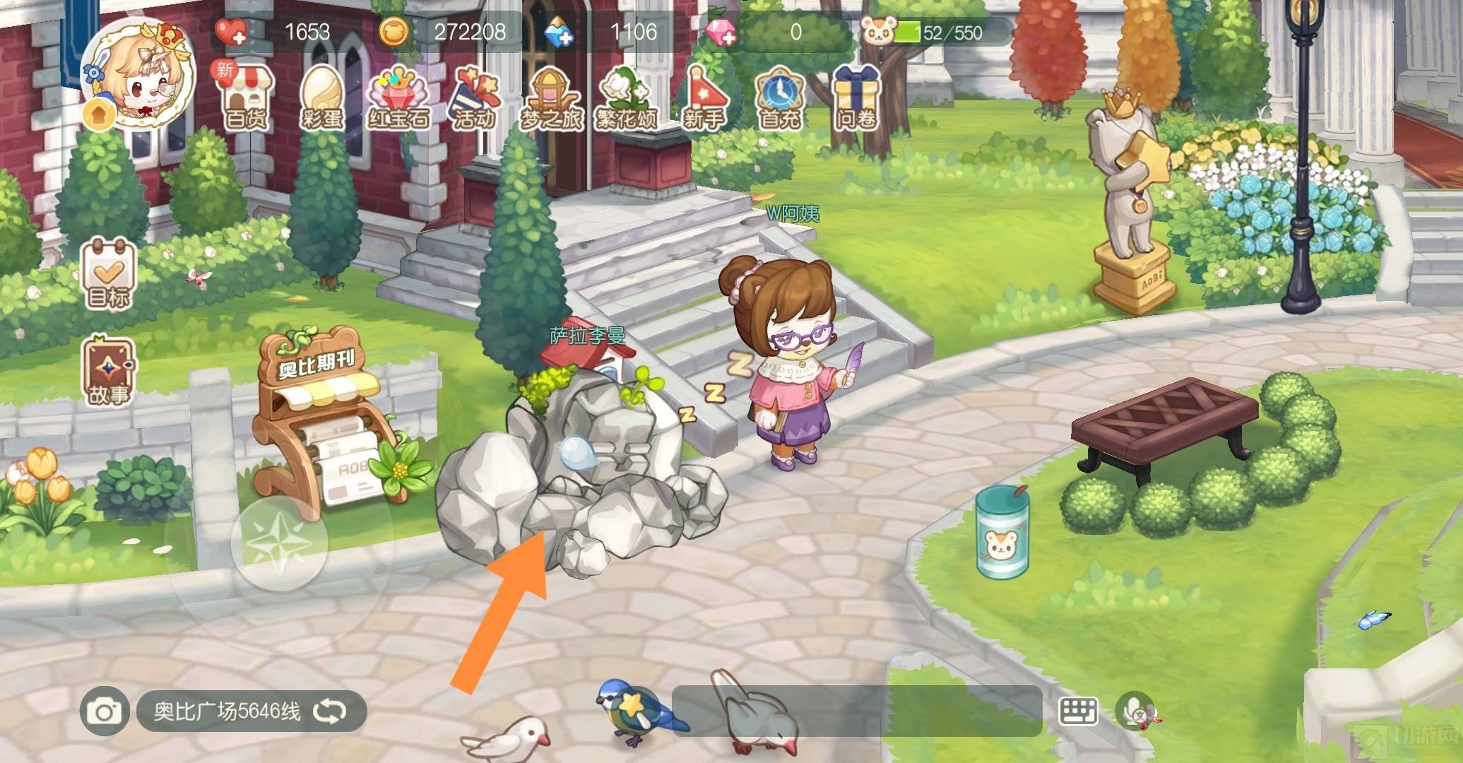 进入奥比广场就可以发现,石巨人就在W阿姨旁边打瞌睡。