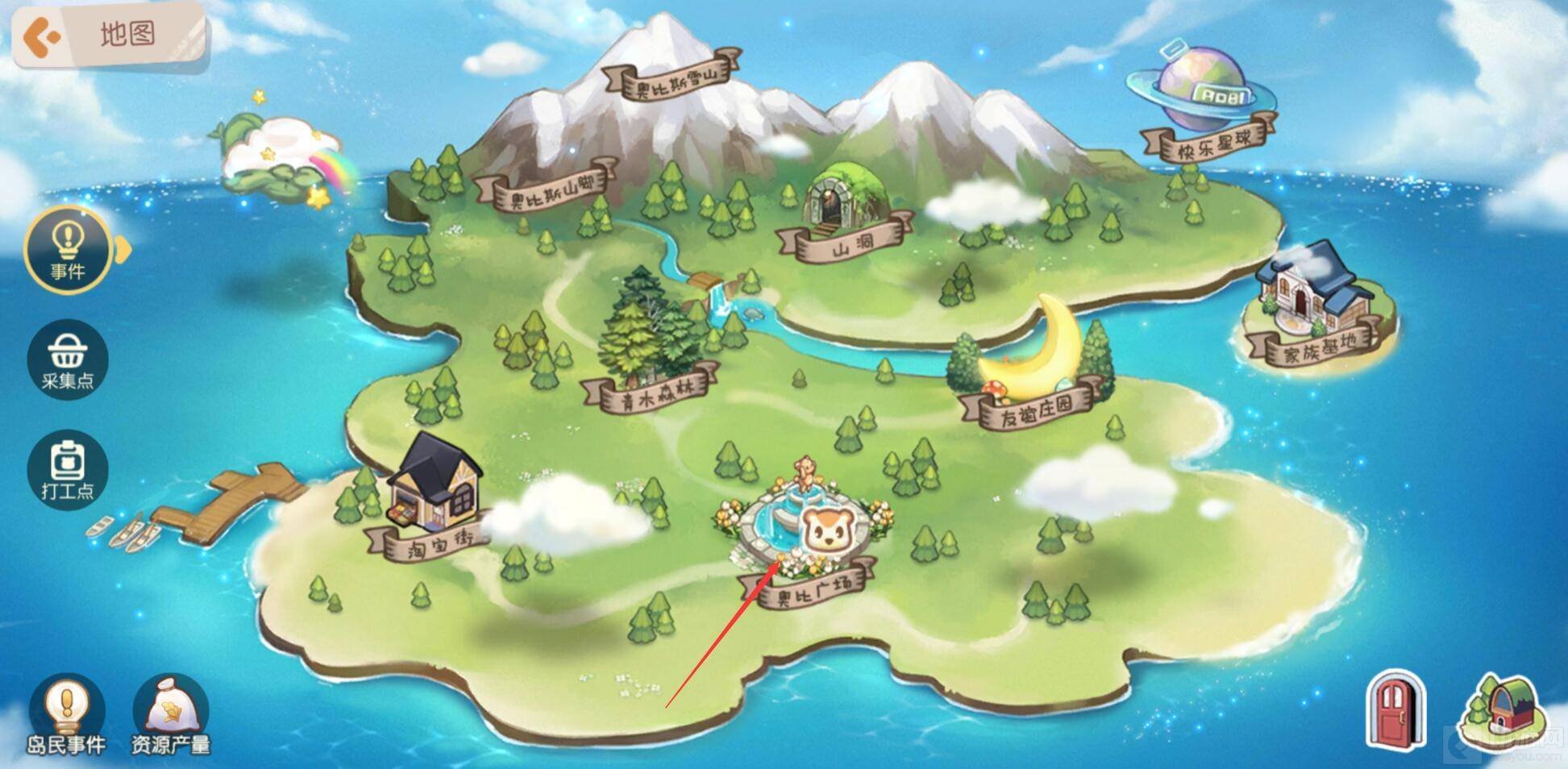 进入游戏后,需要来到奥比广场。