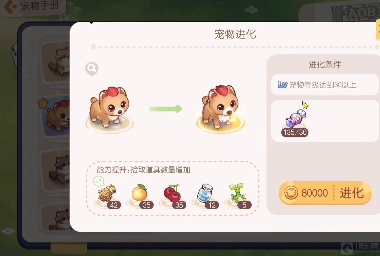 3、当宠物等级达到30级以上时,可以选择宠物进化。