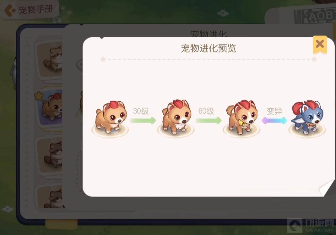4、宠物进化有三个阶段,分别是30级、60级、变异。