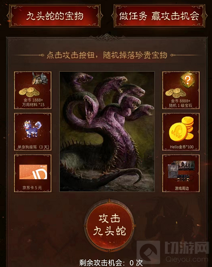 在7月28日至8月17日期间,下载登录Hello语音,点击进入游戏活动入口,即可参与活动。完成日常任务,即可获得攻击九头蛇机会,随机掉落珍贵宝物。一起来Hello语音寻找你的伙伴,一起畅玩暗黑魔幻大陆吧。