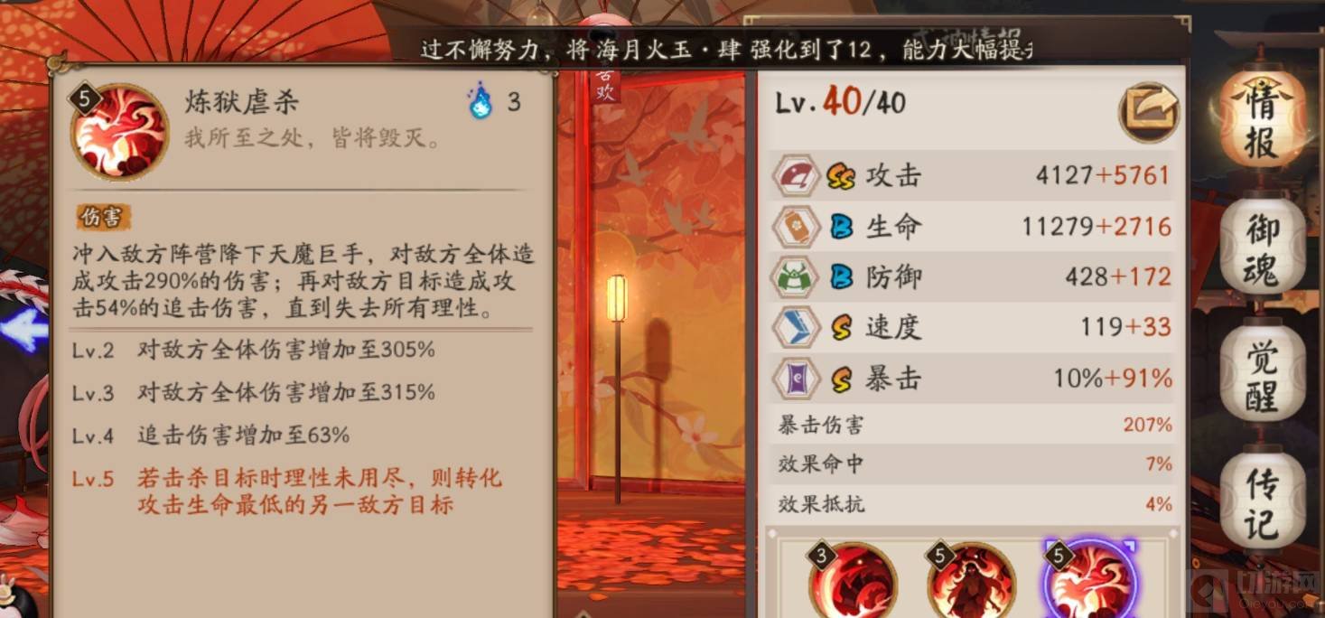 1、属性面板(SS攻击4127,S速度119,S暴击10%)