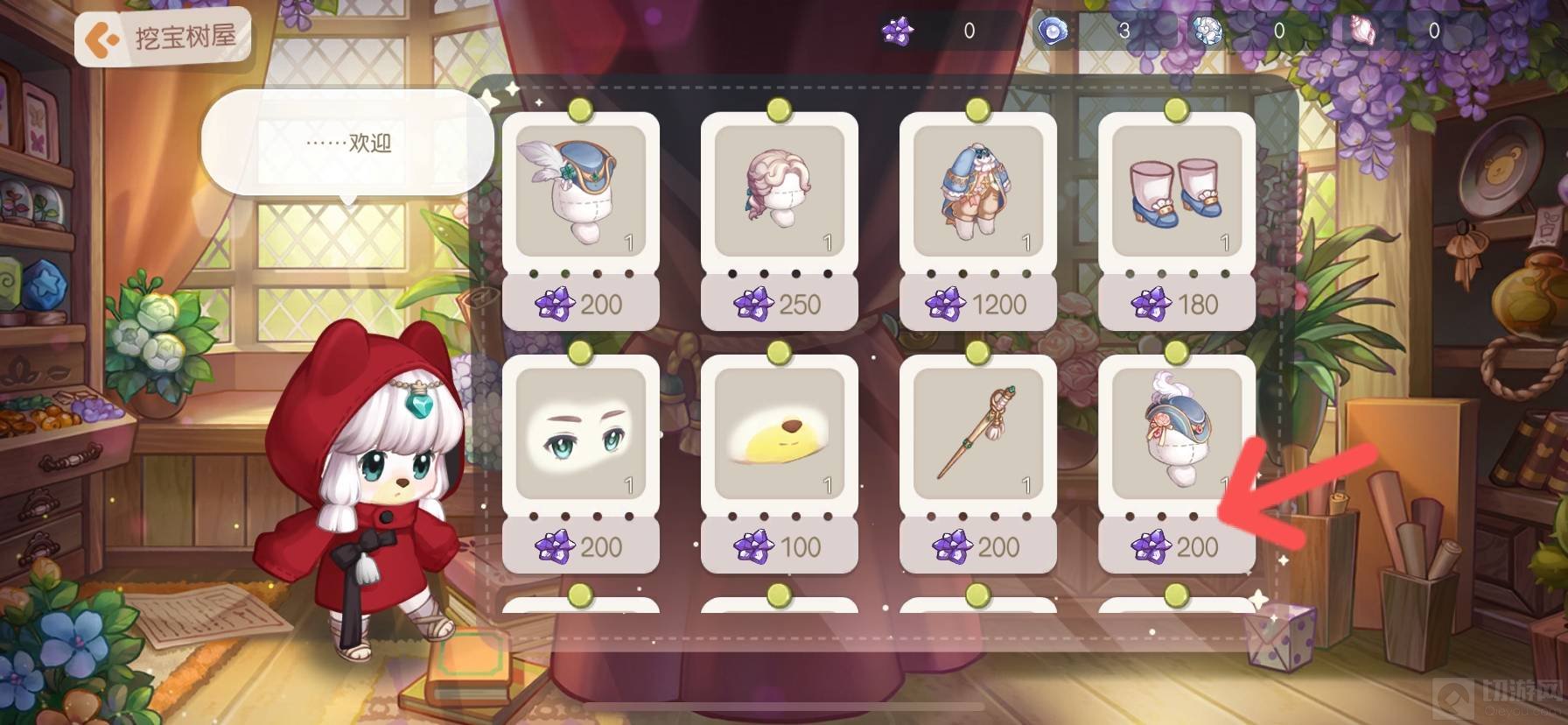 2、挖宝树屋中的物品是需要失落水晶等需要探宝获得的物品进行兑换的。
