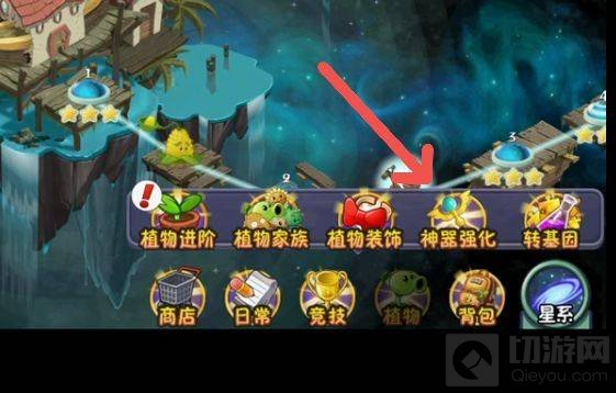 8.最后可点击游戏界面的植物上显示的神器强化,即可查看你的魔豆神器。