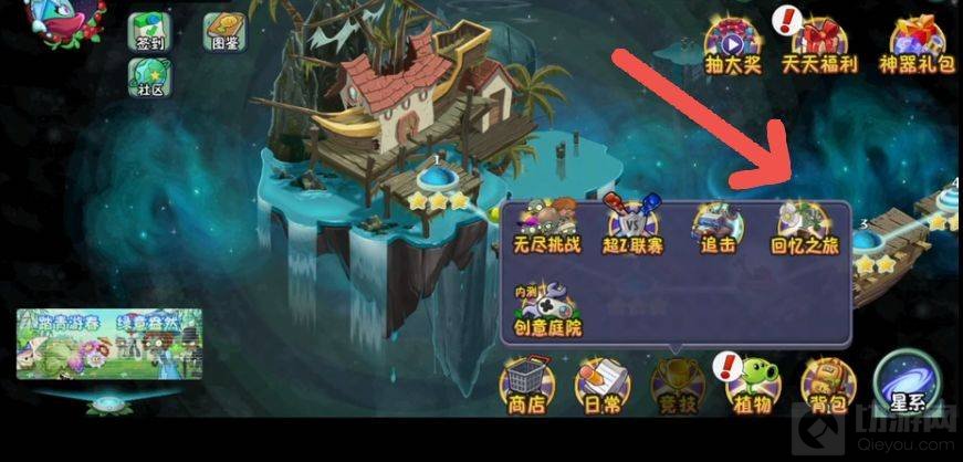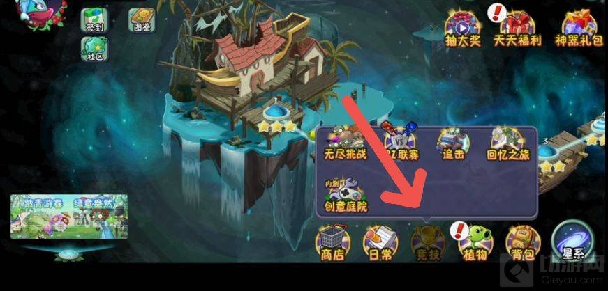1.先登录植物大战僵尸2游戏,在游戏界面中点击竞技。