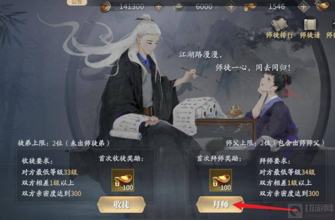 3,在师徒界面点击拜师按钮。