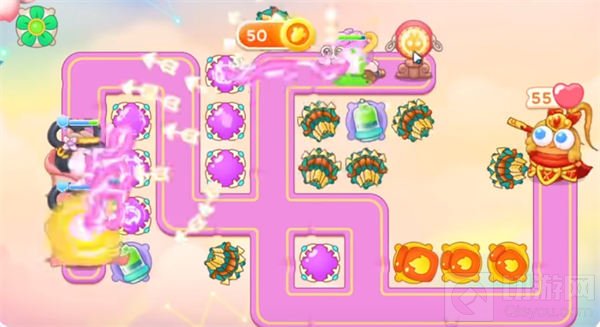 7、这一关主要的建造位置及时在赛道中间的区域,主要的输出是魔法球和多重箭,之后就能建造炮塔就建造炮塔,能升级就升级,比较轻松就能无伤通关了。