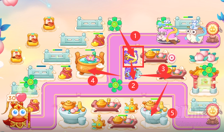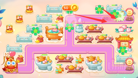 4.全部填满的炮塔后玩家就可以放心的打桃子了(攻击桃子可以让玩家获得更多的小红心)